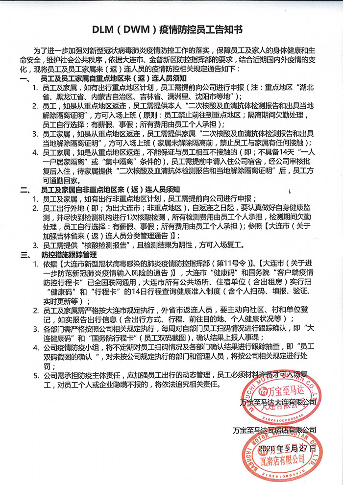 DLM(DWM)端午節(jié)期間疫情防控員工告知書(shū)